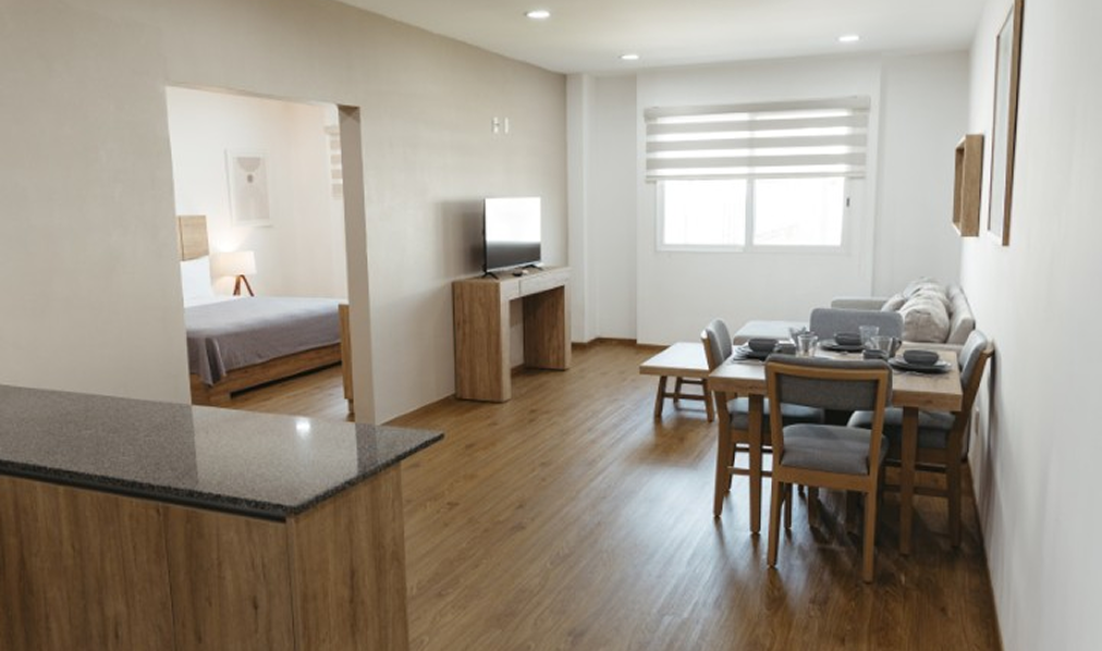 Alojamiento con capacidad para 4 personas,. Equipada con dos camas Queen Size, baño completo, escritorio, televisión, aire acondicionado, plancha con tabla para planchar, secadora, limpieza diaria y servicios básicos.
