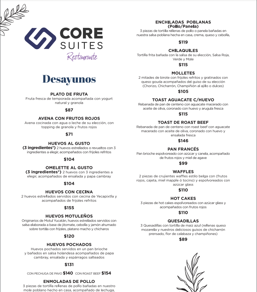 En Core Suites, nuestro restaurante está diseñado para que disfrutes de experiencias gastronómicas en un ambiente acogedor sin salir de casa.